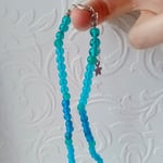 This bright and cheery seaside themed necklace is just waiting to go on adventures! Featuring small glass beads in different blue hues, and a diamanté silver anchor pendant, this necklace brings the heart of the ocean to its wearer. The necklace is strung on 16 inches (40.64 cm) of jewellery wire with a lobster claw clasp and metal links to make it fully adjustable to your comfort. I love how when the sun catches this necklace, the blues light up and sparkle like the ocean and the anchor gives out delicate twinkles as well. These beads and anchor charm have been taken from broken jewellery, cleaned, up and given a new lease of life, ready to continue their journey.