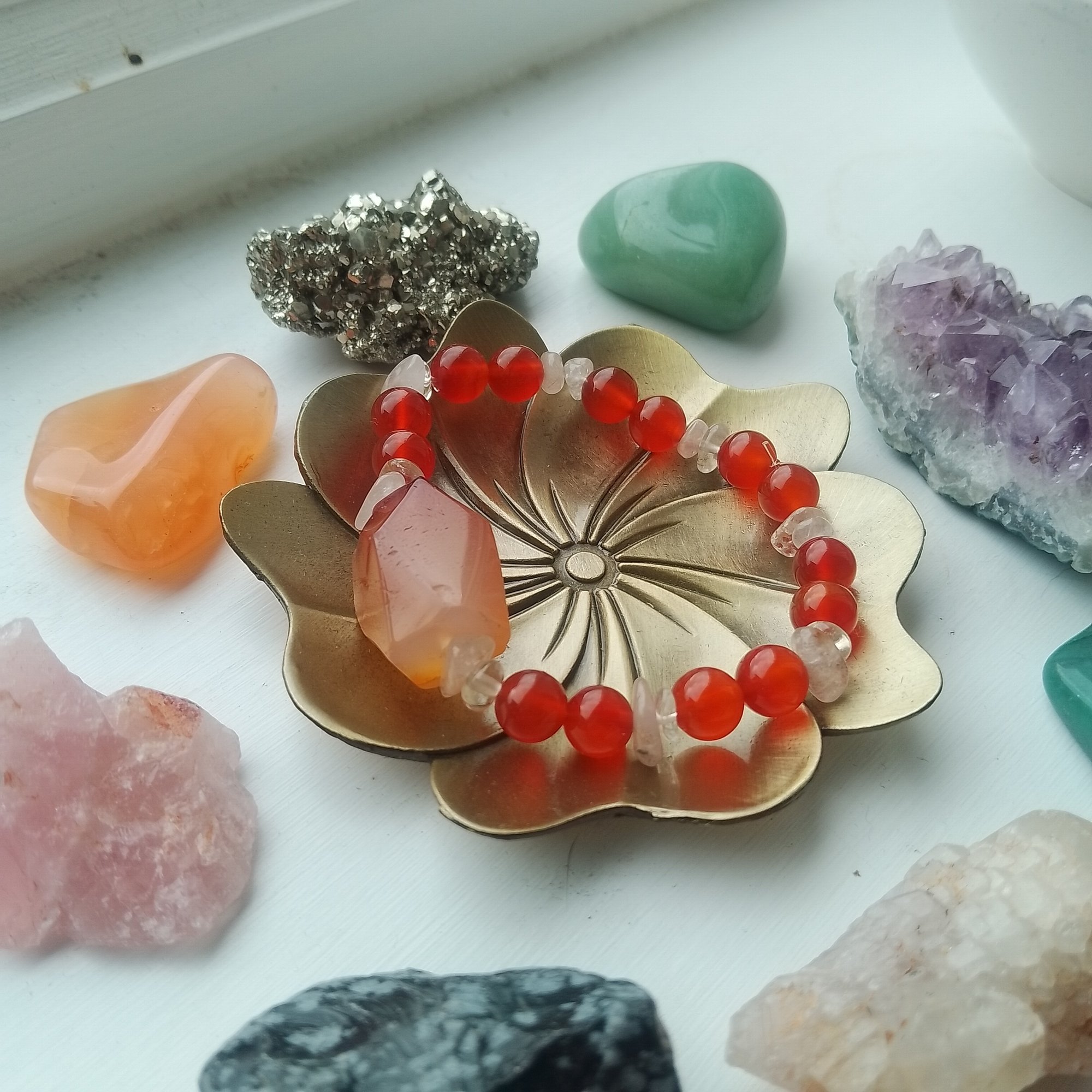 Carnelian is said to be one of the best stabilising stones, helping to restore vitality and motivation, whilst stimulating creativity and open-mindedness. It radiates the feelings of courage and passion to help promote positive life choices. It's also said to dispel feelings of apathy and replace them with motivation and success. Carnelian is useful for overcoming mental blockages and pain, allowing you to open up, trust yourself, and your abilities. I wear carnelian all the time as the benefits of it are truly brilliant.