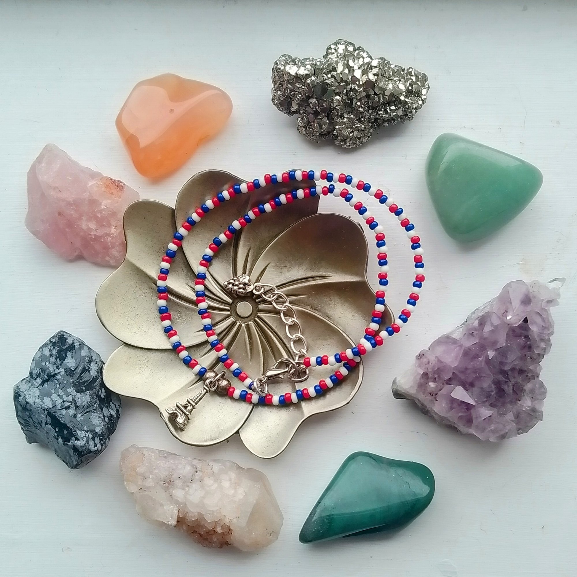 These beads have been cleansed and are ready for their next home. I have taken them from broken jewellery, and some have been bought from ethically sourced places. This bracelet will come in plastic free packaging to lessen the harm to Mother Earth.