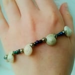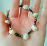 This bracelet is also made using jewellery-grade elasticated thread, which DOES contain plastic, but I'm using up my supply before I switch to sustainably sourced elastic, so this reel doesn't go to waste. This bracelet will fit most wrist sizes, though if you would prefer a specific size, add a note upon purchasing, and I will tailor it to you.