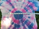 I call this up-cycled t-shirt the 'Eye of the Lotus' as the swirling pinks and purples in a radial pattern remind me of the centre of a flower, or an all-seeing eye.