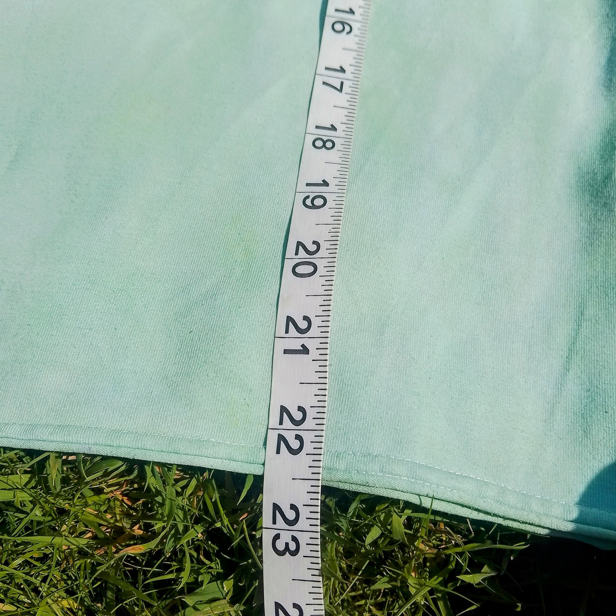 This quirky top is full of character and truly one of my favourite pieces to design. I found the original top at a thrift store with a stain on the front, but I knew it still had lots of potential. I cleaned it up, did a half-and-half dye of vibrant lilac and a minty green, and then used clothing paint to stamp on the three smiley faces on the front. I love how it turned out, slightly punk and full of potential to be a staple everyday item. The t-shirt also has some pretty unique features of its own, with rivet details all around the edges of the neckline and short sleeves and buckles to finish it off. This t-shirt is approximately 18 inches (45.72 cm) by 22.5 inches (57.15 cm), making it a size S.